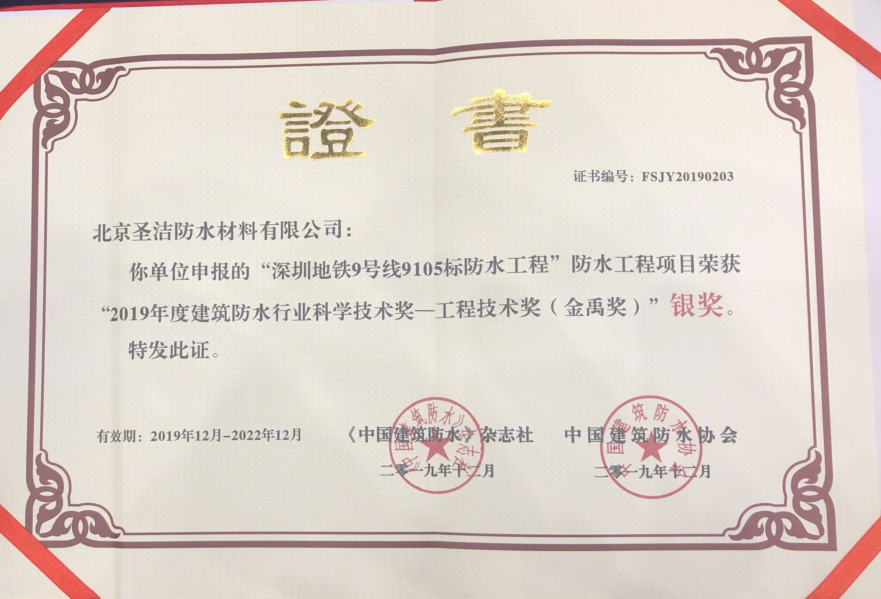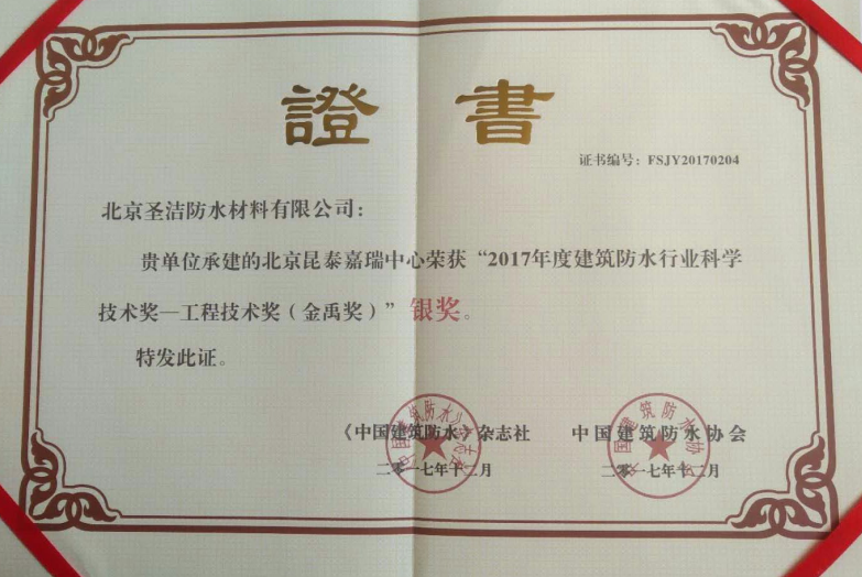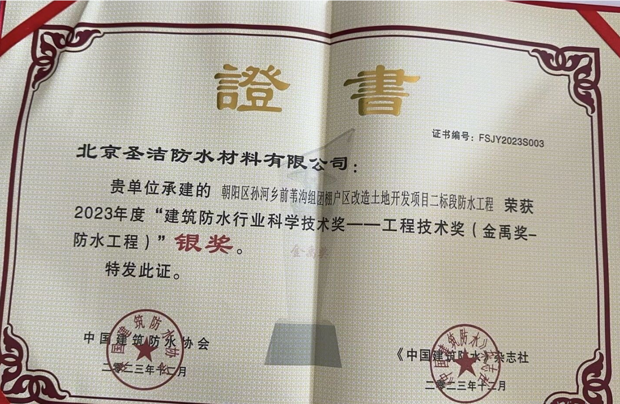 • 河北省建筑防水協會科學技術獎-工程技術獎