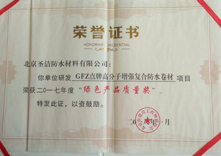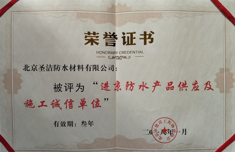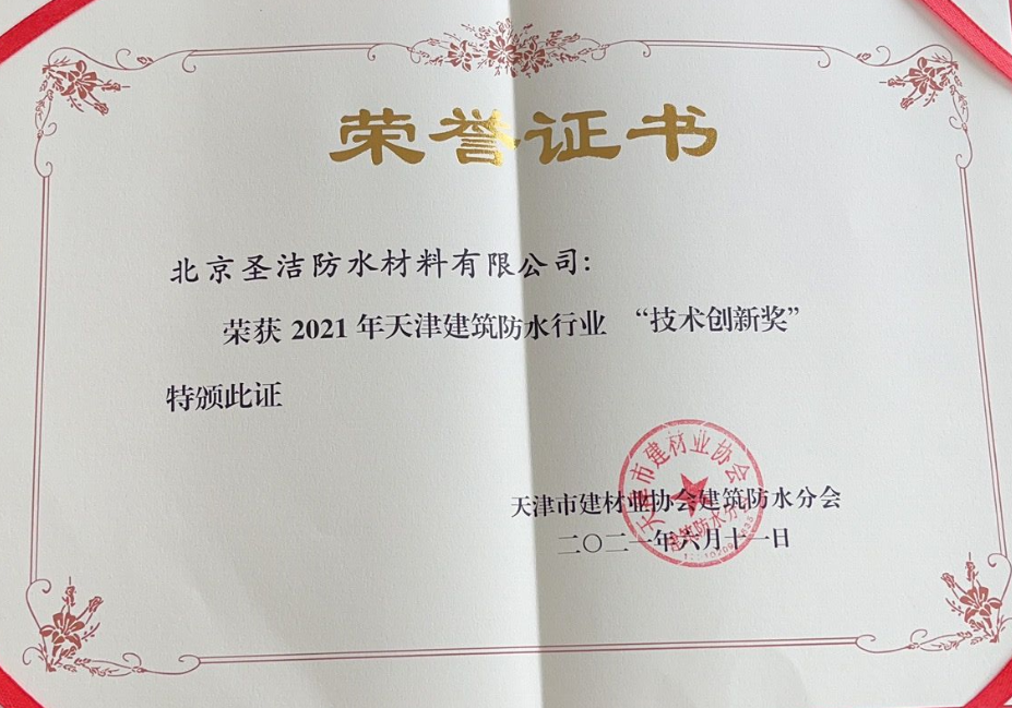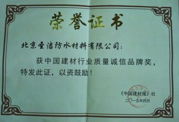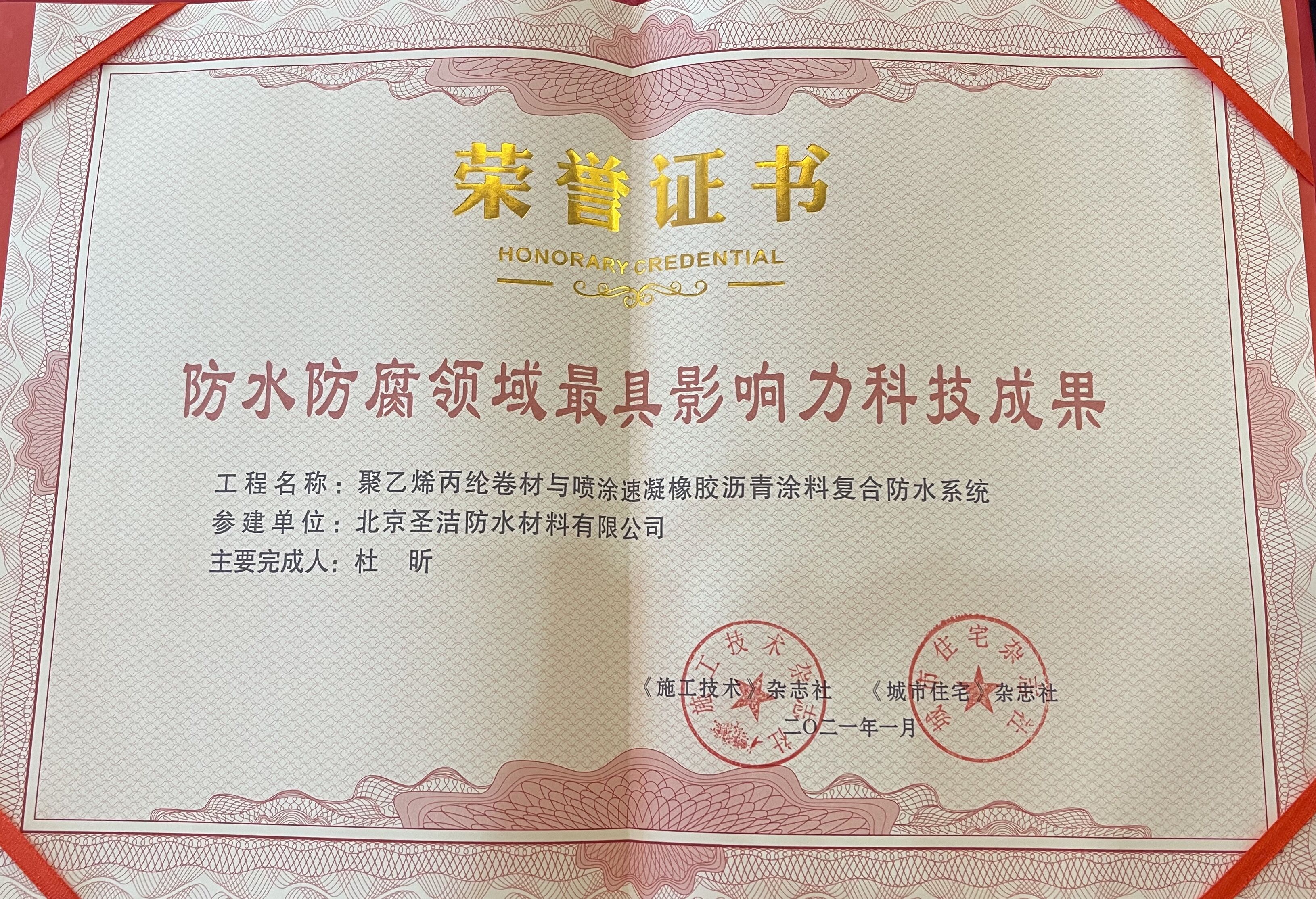 • 中國建筑學會建筑防水學術委員會榮譽證書